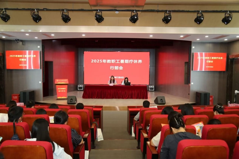 7月8日,在嘉定校区报告厅举行了2025年暑期教职工疗休养行前会,党委副书记、副校长、工会主席张中美从行前准备、组织纪律和安全意识等方面向全体休养员做了动员、提醒和要求。