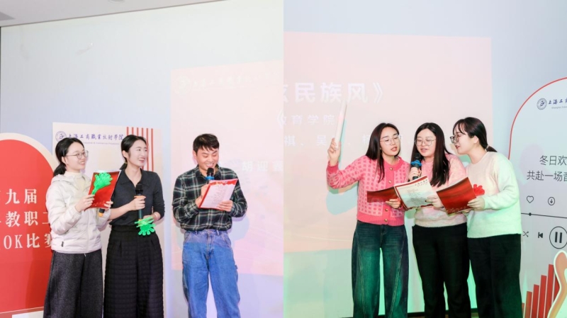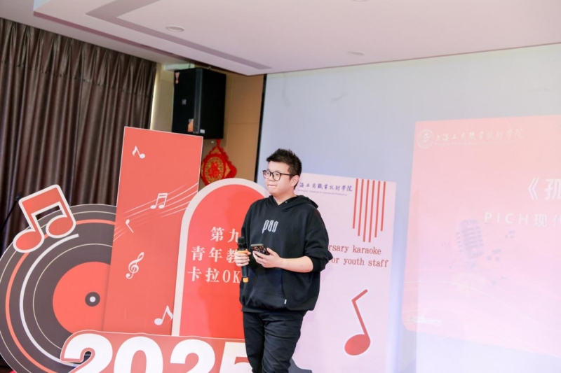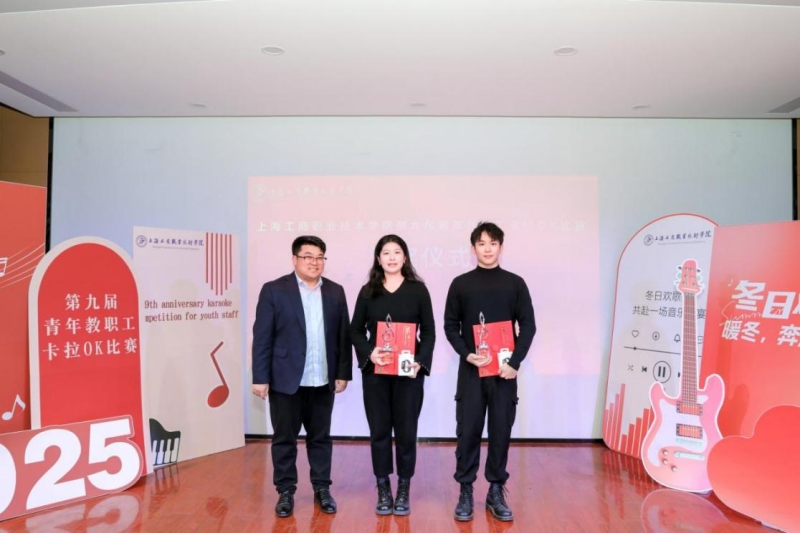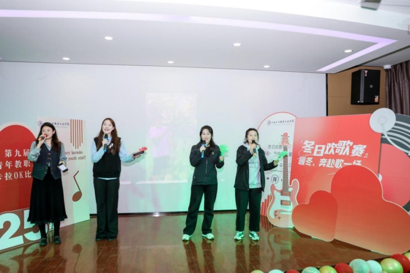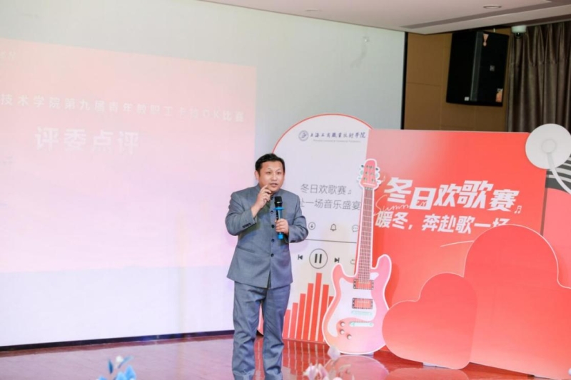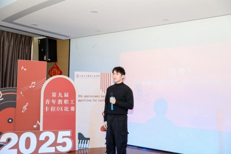 为进一步丰富学校青年教职工精神文化生活,营造格调高雅、和谐向上的校园氛围,充分展现新时代青年教职工的昂扬风采,由校工会主办、青年教师联谊会承办的第九届青年教职工卡拉OK比赛于2025年12月19日下午在嘉定校区教工之家举行。党委副书记、副校长、工会主席张中美出席活动,校外嘉宾岳远洋副教授,校团委沈家飞副教授以及工会委员、团委兼职副书记钟乃夫担任此次比赛的评委。大唐信息技术学院郭馨蕊主持活动,现场气氛热烈,来自各学院、各部门的观众热情洋溢,现场座无虚席!